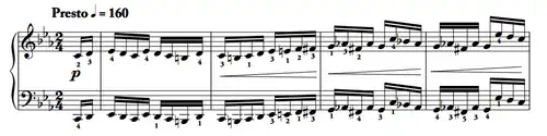 La primera interpretación conocida de este estudio fue realizada por Ferruccio Busoni en Berlín en 1908.[2] Una interpretación típica dura 9 minutos.