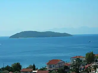 La isla más cercana es Scíathos, que se halla al noroeste.
