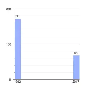 | Gráfica de evolución demográfica de Tuñali entre 1993 y 2017 |