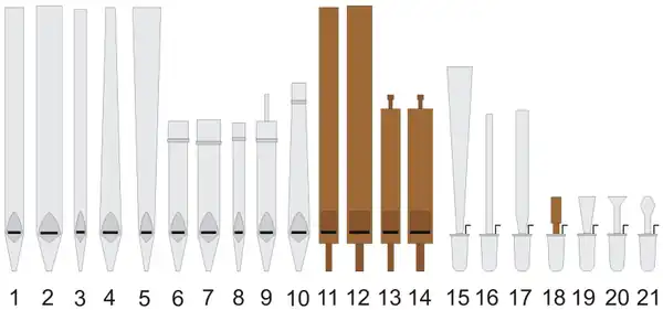 - ↑ «The variety of organ pipes and stops» Die-Orgelseite. Consultado el 17 de marzo de 2025.