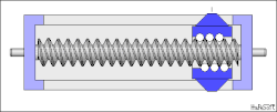 Del mismo modo si el husillo se fija longitudinalmente, su rotación da lugar al desplazamiento de la tuerca, como se ve en la animación.