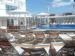 Una tumbona o reposera (camastro en México)[1][2] es un mueble de piscina, jardín o playa, formado a menudo por láminas de plástico blanco que se diseña para que se recueste la gente o se siente sobre ella mientras se relaja.