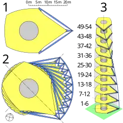 El edificio, construido en acero, vidrio y hormigón armado, se estructura en nueve cubos rotatorios cuyo principal elemento estructural es un núcleo de hormigón armado, de 10,6 metros de diámetro (a modo de columna vertebral). Su centro se corresponde exactamente con el eje de rotación de las plantas. El exterior del edificio está revestido por paneles de cristal y aluminio. Cada uno de los cubos tiene seis plantas.