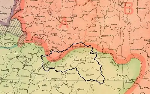 Durante los siglos XVI al XVIII, esta región limítrofe experimentó una colonización activa, con la fundación de asentamientos cerca de las fortalezas de la línea defensiva de Bélgorod zasechnoy, que bloqueaba el camino de los tártaros de Crimea hacia el estado ruso, los colonos asumieron el deber de guardia y la protección militar de la frontera.[4] En el reinado de Anna de Rusia, de acuerdo con los " Puntos Decisivos " de Daniel el Apóstol, las tierras comenzaron a otorgarse principalmente a inmigrantes de la Orilla Derecha de Ucrania, que estaba bajo el dominio de la Mancomunidad polaco-lituana, que querían recibir tierras gratis.[3]