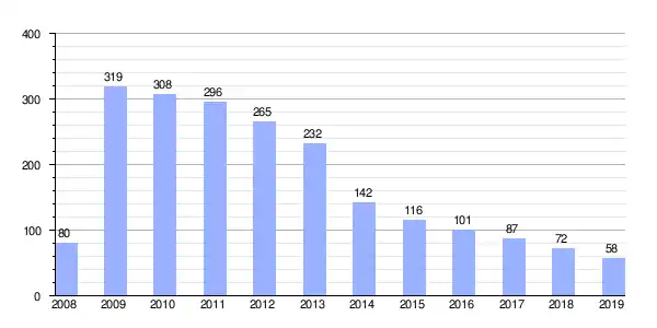 | Gráfica de evolución de Deuda viva del Ayuntamiento de Uleila del Campo entre 2008 y 2019 |