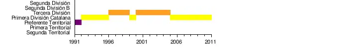 Durante la existencia de la Primera División Catalana hasta la reestructuración del fútbol catalán de 2011: