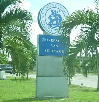 La universidad Anton de Kom es la única que existe en Surinam. Se encuentra ubicada en la capital, Paramaribo y su nombre hace honor a Anton de Kom, activista anticolonial que murió de tuberculosis mientras estaba en el exilio en los Países Bajos.