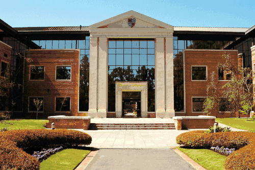 Foto de la entrada principal de la Escuela de Negocios de la Universidad.