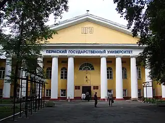 • en 1930, la facultad pedagógica se separó en un instituto pedagógico independiente (desde 1995 — Universidad Pedagógica del Estado de Perm, desde 2012 — Universidad Pedagógica y Humanitaria del Estado de Perm)[13]
