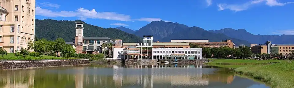 La Universidad Nacional Dong Hwa (NDHU) es una universidad nacional de investigación situada en Hualien, Taiwán. Fundada en 1994, NDHU es ampliamente clasificada como una de las mejores universidades en el 10% de Taiwán por THE,[1] QS,[2] U.S. News,[3] y ofrece la sexta gama más amplia de disciplinas en Taiwán, incluyendo ciencias, ingeniería, informática, estudios ambientales, oceanografía, derecho, artes, diseño, humanidades, antropología, ciencias sociales, ciencias de la educación, música y negocios.[4][5][6][7]