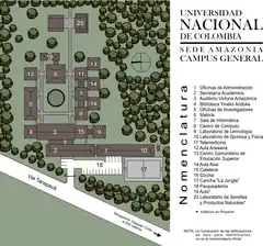 - ↑ «Mapa de la sede». Acerca de la sede. Universidad Nacional de Colombia, Sede Amazonía. Archivado desde el original el 22 de julio de 2012. Consultado el 12 de septiembre de 2011.