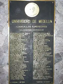 - ↑ a b c d Universidad de Medellín: 1950–2000: 50 años de Ciencia y Libertad. Colombia: Universidad de Medellín. 1999. p. 140. ISBN 958-638-33-1218-5