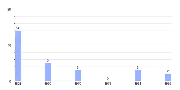 | Gráfica de evolución demográfica de Urízar entre 1802 y 1986 |