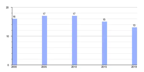 | Gráfica de evolución demográfica de Uriz (aldea) entre 2000 y 2019 |