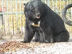 ![]() Un ejemplar adulto de oso negro japonés (Ursus thibetanus japonicus) cautivo en el Ueno Zoo. | ||