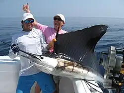 Los animales acuáticos más frecuentemente cazados para deporte son los peces, incluyendo muchas especies desde grandes depredadores marinos como tiburones y atún, hasta peces de agua dulce como truchas y carpas.[52][53]