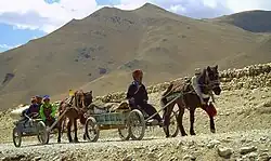 Los animales domésticos de trabajo, incluidos el ganado, los caballos, yaks, camellos y los elefantes, se han utilizado para el trabajo y el transporte desde los orígenes de la agricultura, disminuyendo su número con la llegada del transporte mecanizado y la maquinaria agrícola. En 2004, aún proporcionaban alrededor del 80% de la energía para las granjas pequeñas principalmente en el tercer mundo y aproximadamente el 20% del transporte mundial, nuevamente principalmente en áreas rurales. En regiones montañosas no aptas para vehículos con ruedas, los animal de carga continúan transportando mercancías.[25]