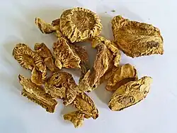 - ↑ Bensky, Dan; Steven Clavey y Erich Stöger (2004). Chinese Herbal Medicine: Materia Medica (en inglés) (3ra edición). Eastland Press, (Seattle). p. 723. ISBN 0939616424.
