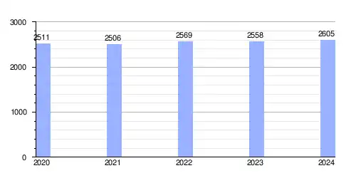 Hasta 2024 la población era de 2605 habitantes,[2] con una densidad de población de 64,35 hab/km².[2]