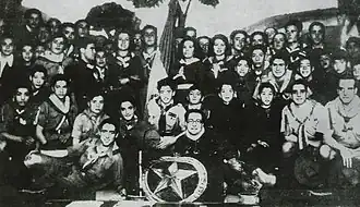 ![]() Exploradores y Guías de Granada en el asilo de San Rafael (1936). En el centro con anteojos, Víctor José Jiménez, recién nombrado comisario de Granada. | ||