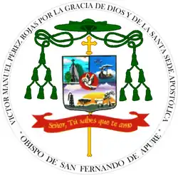 - ↑ «Monseñor Víctor Manuel Pérez Rojas, Obispo de Apure arriba a 50 años de entrega a Dios y a su pueblo». Archivado desde el original el 29 de agosto de 2016. Consultado el 23 de junio de 2016.