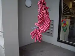 En la víspera del Año Nuevo chino, los chinos hacen un arco con madera de melocotón para exorcizar al demonio causante de las plagas, algo que se remonta a la dinastía Qin. El fantasma no hacía daño al hombre, pero los antiguos les tenían miedo, por lo que pedían ayuda para ahuyentarlo. El dios guardián de la entrada estaba estrechamente relacionado con los festivales y la madera de melocotón se consideraba una fuerza sobrenatural con la que se podía ahuyentar a los fantasmas.[7]