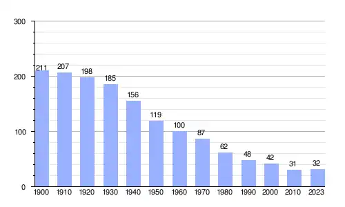 | Gráfica de evolución demográfica de Valbuena entre 1900 y 2023 |