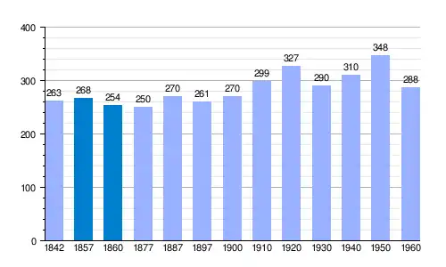 Población de derecho (1842-1970, excepto años 1857 y 1860 que es población de hecho) según los censos de población del INE.[15] Población de hecho (1857 y 1860) según los censos de población del INE.[15] Población residente empadronada (2000-2024) según el Padrón Continuo por Unidad Poblacional de 2024 del INE.[3] |