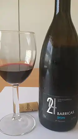 - Syrah. Variedad de la que se están obtenidos excelentes vinos en nuestra Denominación de Origen, son densos equilibrados y de larga vida, con aromas complejos de gran riqueza en matices, su paso de boca es elegante percibiendo cierta astringencia que no entorpece su disfrute.