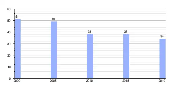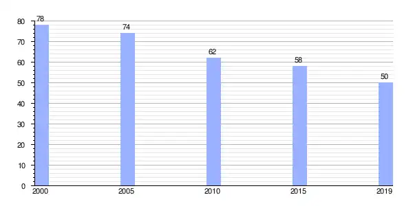 | Gráfica de evolución demográfica de Vale (aldea) entre 2000 y 2019 |