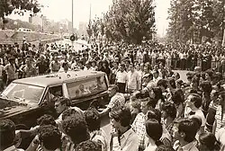 A las 15:30 el furgón negro empieza a andar. El padre y la hermana andarán tras el féretro los 10 kilómetros que conducen hasta el cementerio. Al pasar por Viveros, las obras de los pisos están paradas y los albañiles están abajo. La comitiva no se desvía hacia gobierno civil y sigue por la Alameda. Los vidrios de Las Provincias quedan hechos añicos. Cien mil valencianos recorren el puente y hay algunas banderas: rojas, rojinegras, cuatribarradas y algunas con el escudo del consell. El presidente se ha sumado como uno más, así como el presidente de la diputación, a la manifestación de duelo. El alcalde también está y dirigentes de izquierda y uniformados de la S.A.L.T.U.V. y agricultores de Unió.