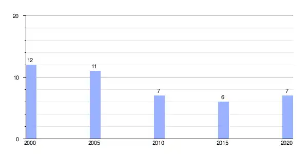 | Gráfica de evolución demográfica de Vales entre 2000 y 2020 |