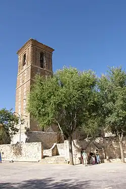 Iglesia de Valfermoso de TajuñaIglesia parroquial bajo la advocación de San Pedro Apóstol.[5] Se trata de una obra del siglo XVI, de grandes dimensiones, semivacía porque perdió casi todos sus bienes en la Guerra Civil, salvo una gran cruz de plata repujada y altar, del siglo XVI. El acceso es una bella portada renacentista.