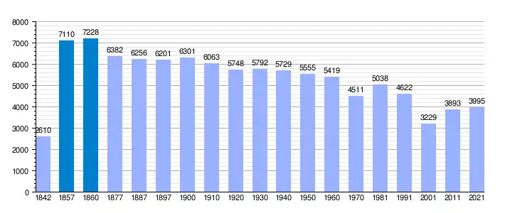 Población de derecho según los censos de población del INE. Población de hecho según los censos de población del INE.Entre el censo de 1857 y el anterior, crece el término del municipio porque incorpora a Valle de Tudela.[22] |