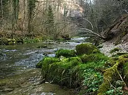 “En el caso del Rudrón un valle fluvial en V de mayor anchura, aunque profundo, con pendientes menos fuertes y más regulares”.[3]