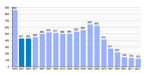 | Gráfica de evolución demográfica de Vallecillo[6] entre 1842 y 2021 |