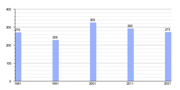 | Gráfica de evolución demográfica de Les Valls d'Aguilar[4] entre 1981 y 2021 |