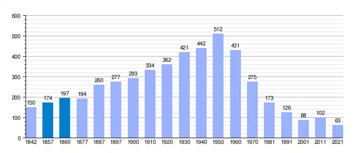 | Gráfica de evolución demográfica de Valtorres[5] entre 1842 y 2021 |