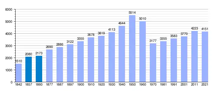 | Gráfica de evolución demográfica de Valverde de Leganés[4] entre 1842 y 2021 |