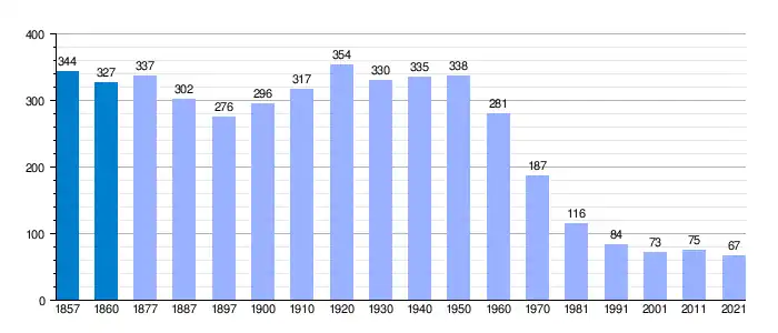 | Gráfica de evolución demográfica de Valverde de Valdelacasa[4] entre 1857 y 2021 |