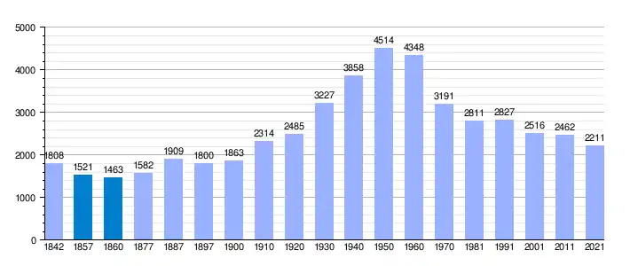 | Gráfica de evolución demográfica de Valverde del Fresno[1] entre 1842 y 2021 |