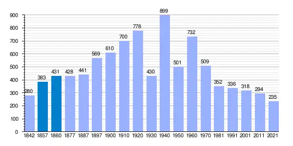 | Gráfica de evolución demográfica de Vecinos[6] entre 1842 y 2021 |