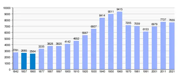 | Gráfica de evolución demográfica de Vega de San Mateo[12] entre 1842 y 2021 |
