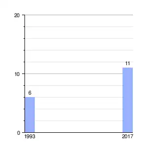 | Gráfica de evolución demográfica de Vega del Caballo entre 1993 y 2017 |