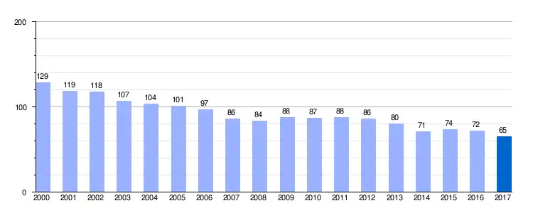 | Gráfica de evolución demográfica de Veguellina de Fondo entre 2000 y 2017 |