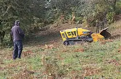 Un UGV operado remotamente es un vehículo controlado a distancia por un operador humano a través de una interfaz. El operador determina las acciones basándose en la observación visual directa o en el uso remoto de sensores tales como cámaras de video digitales. Un ejemplo básico de los principios del funcionamiento a distancia sería un coche teledirigido de juguete.