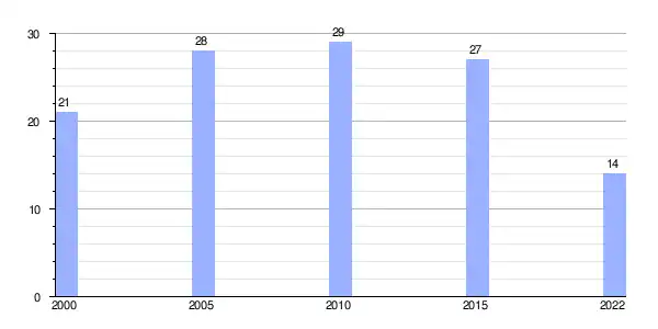 | Gráfica de evolución demográfica de Veigachá entre 2000 y 2022 |