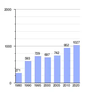 En 2020 registró una población de 1027 personas, lo que corresponde al 1.83 % de la población municipal;[1][7] de los cuales 509 son hombres y 518 son mujeres.[1][7]