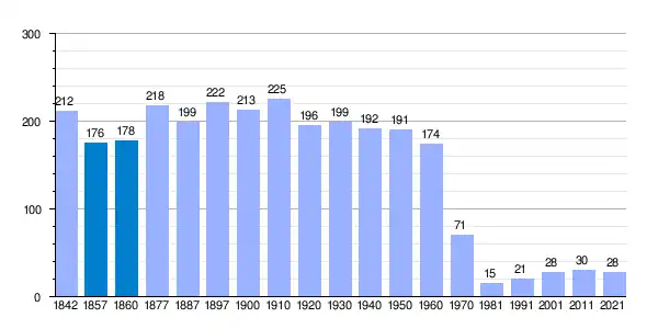 | Gráfica de evolución demográfica de Velilla de la Sierra[5] entre 1842 y 2021 |