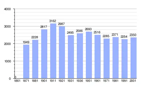 | Gráfica de evolución demográfica de Velo d'Astico entre 1861 y 2001 |